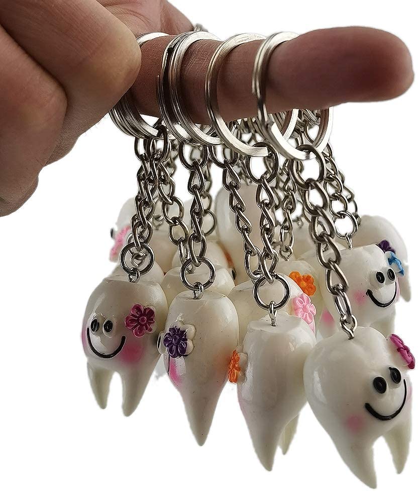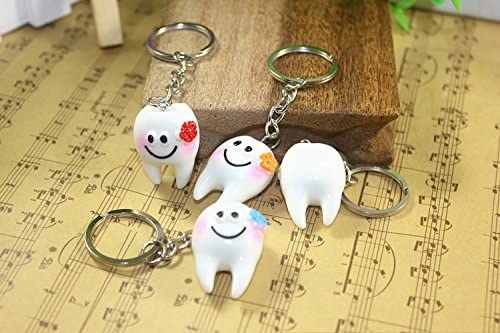Airgoesin 20pcs Keychain Key Ring Hang Tooth Shape Cute Promo Dental Gift