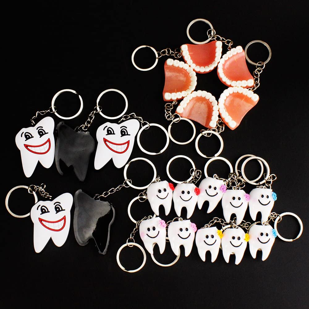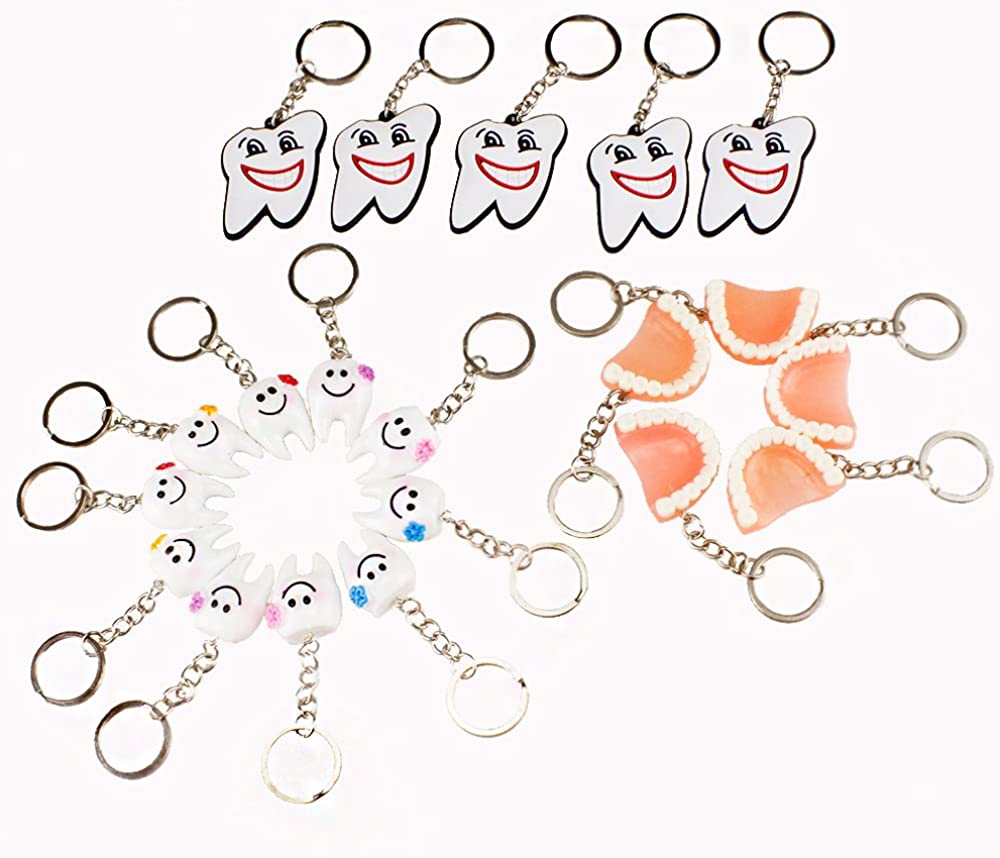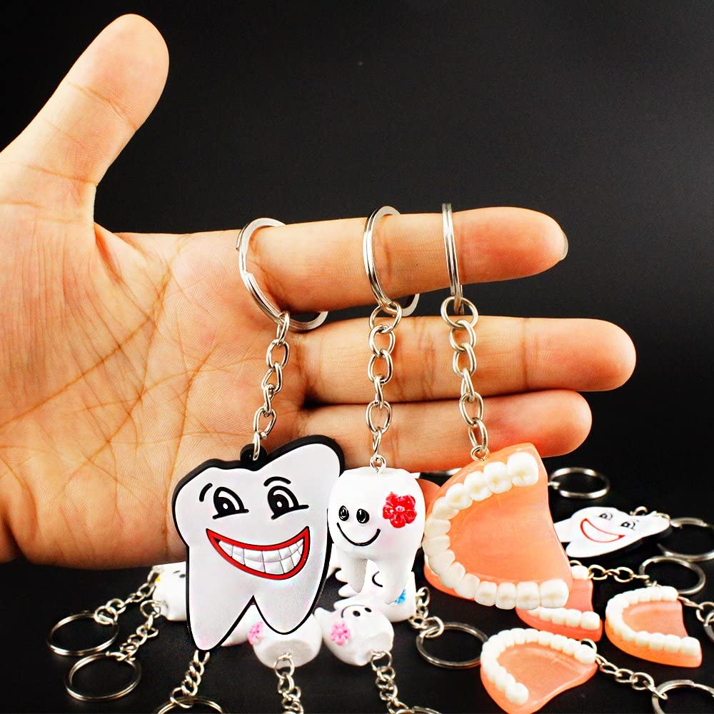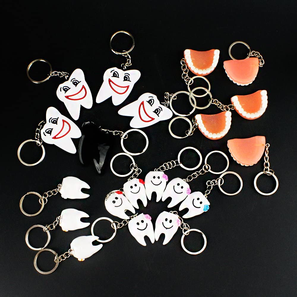 Airgoesin 20pcs Keychain Key Ring Hang Tooth Smile Shape Dental Clinic Gift Christmas Holiday Charms for Kids Birthday Party Favors & School Carnival Prizes