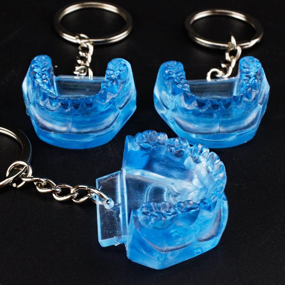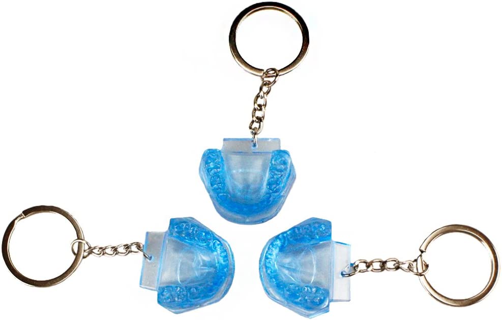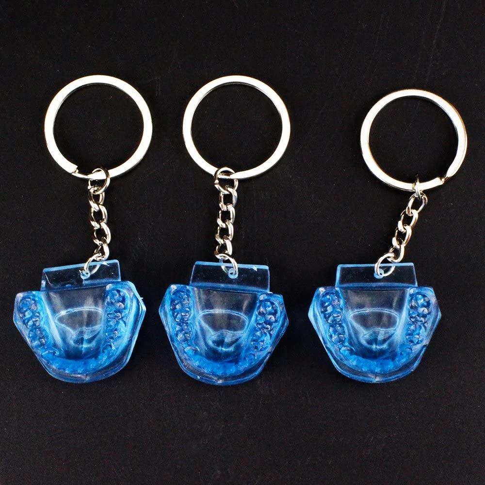 Airgoesin 3pcs Keychain Key Ring Tooth Jaw Shape Dental Clinic Gift Christmas Holiday Charms for Kids Birthday Party Favors Carnival Prizes (Blue)