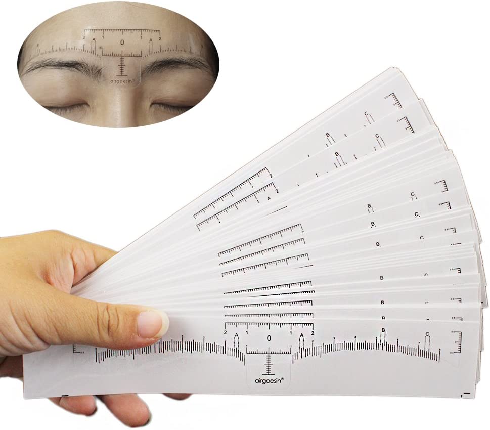 Airgoesin 50pcs Disposable Adhesive Eyebrow Microblading Ruler Guide Sticker Tape Tattoo Template Beauty Tool